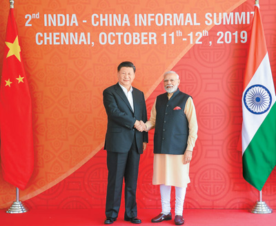 10月12日,国家主席习近平在金奈同印度总理莫迪继续举行会晤。