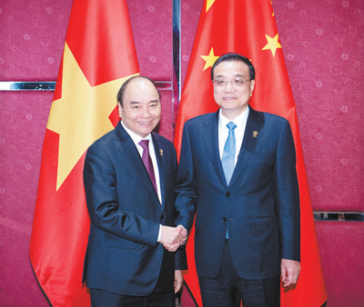 李克强表示,中越是近邻,同为新兴经济体。希望双方牢牢把握双边关系发展的大方向,相向而行,为明年两国建交70周年营造良好氛围。双方要妥善处理海上问题,为扩大交流合作创造有利条件。在当前世界经济下行压力加大背景下,东亚合作要坚持开放包容,聚焦合作,共同应对挑战。中方愿同越方巩固政治互信,深化互利合作,为两国人民谋福祉。中方支持越方明年担任东盟轮值主席国,愿同包括越方在内的东盟各国一道,推动中国—东盟关系和东亚合作取得更大发展。