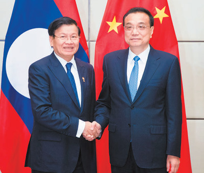 李克强表示,中老是山水相连的友好邻邦。我们愿同老方保持高层交往势头,共同落实好构建中老命运共同体行动计划。加强宏观经济政策交流,分享发展经验,建设好中老铁路等大项目。中方全力支持老方办好澜沧江—湄公河合作第三次领导人会议,促进地区发展与合作提质升级。