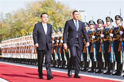 会谈前,李克强在人民大会堂东门外广场为霍尔尼斯举行欢迎仪式。
