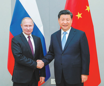 习近平强调,新时代要有新举措、新作为。双方要继续共同努力,结合国际形势发展变化,根据各自国家发展和双方合作需要,开拓创新,推动中俄关系在高水平上保持积极健康发展势头,不断取得新成果,更好造福两国人民,惠及地区及世界。