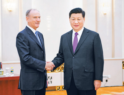 国家主席习近平2日在人民大会堂会见来华出席中俄执法安全合作机制会议和中俄战略安全磋商的俄罗斯联邦安全会议秘书帕特鲁舍夫。