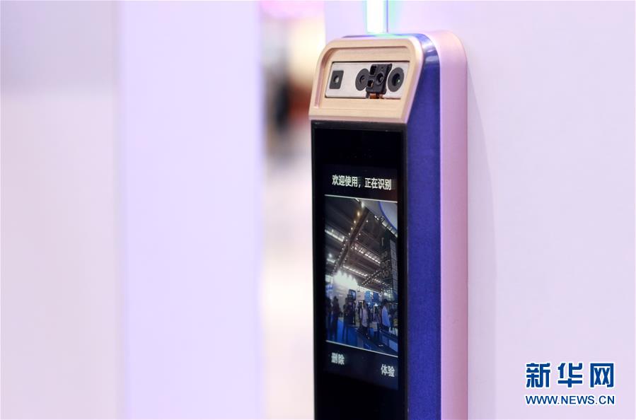 这是深圳奥比中光科技有限公司展示的刷脸门锁(2019年11月13日摄)。