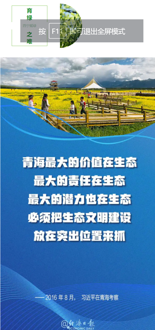 保护好青海生态环境,是“国之大者”。青海省委常委、西宁市委书记陈瑞峰讲到,习近平总书记强调的青海最大的价值在生态、最大的责任在生态、最大的潜力也在生态,就是西宁在全国大局中的定位,就是西宁服务全省的出发点和落脚点。西宁坚持生态保护优先、推动高质量发展、创造高品质生活,高原绿就是这样一天天多起来的。