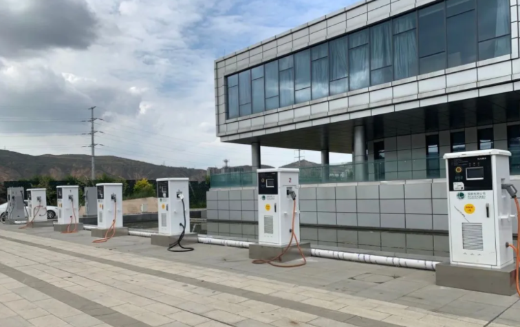 青海锂产业展览馆外的充电桩。