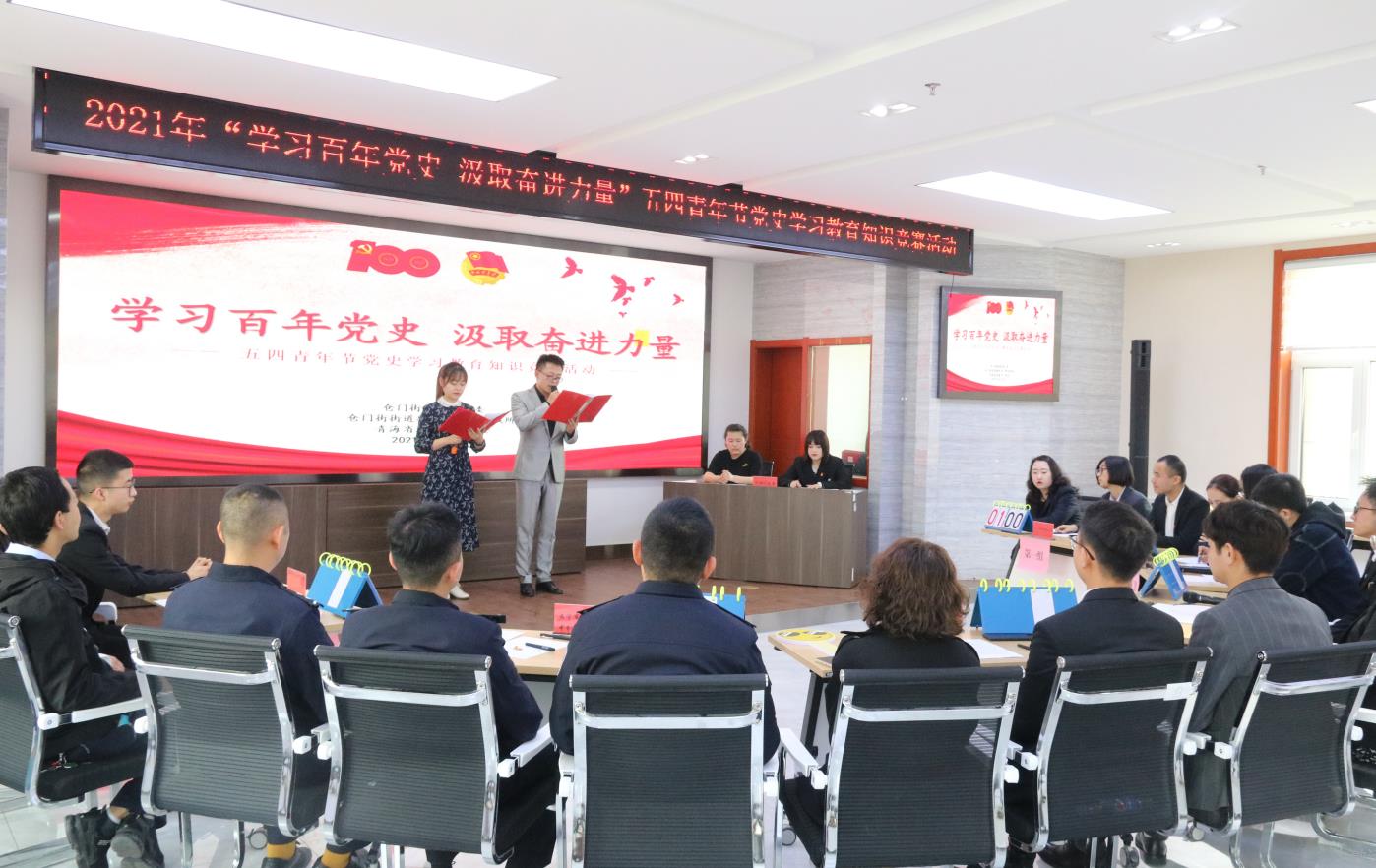 为庆祝中国共产党成立100周年,持续推动党史学习教育不断深入,加强辖区志愿者的党性锻炼,营造学党史、跟党走的浓厚氛围。4月26日下午,仓门街街道新时代文明实践所组织社区新时代文明实践站、“三江同根 血脉同源”志愿服务队及辖区各志愿服务队,开展了以“学习百年党史 汲取奋进力量”为主题的党史学习教育知识竞赛活动,教育引导辖区志愿者们把党史学习好、总结好、传承好、发扬好。