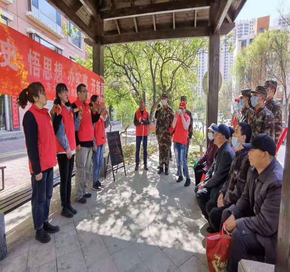党史宣讲进楼院。东大街“党史快板宣讲小分队”走进新民街,以快板这种独特的接地气的方式,让广大群众通俗易懂的聆听红色故事,重温革命精神,增强学习教育吸引力、感染力,推动党史学习教育飞入寻常百姓家,真正在群众身边“流行起来”。