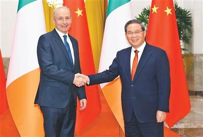李强指出,中爱两国的经济互补性强,双方应当加强发展战略对接,深挖各领域合作潜力。中方愿同爱方推动双边贸易扩面提质,拓展飞机租赁、保险、医疗、健康等服务贸易,更好满足两国人民需求,欢迎爱方企业用好进博会、服贸会等平台加大商品推介。双方要共同抢抓未来发展机遇,深化绿色能源、数字经济、人工智能、信息技术、生命科学等领域合作,同时进一步便利人员往来,加强文化、旅游、教育和地方交流合作,不断夯实两国友好的民意基础。当前,全球单边主义、保护主义抬头,国际经贸秩序遭受严重冲击。中方愿同爱方加强在联合国等多边机制的沟通协作,维护多边主义和自由贸易,推动国际秩序朝着更加公正合理的方向发展。爱尔兰今年下半年将担任欧盟轮值主席国,希望爱方为促进中欧合作发挥积极作用。