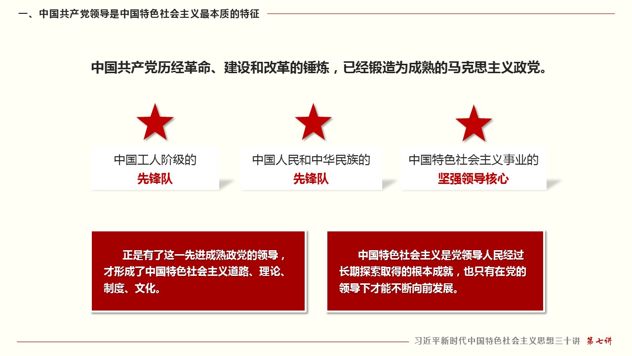 一、中国共产党领导是中国特色社会主义最本质的特征