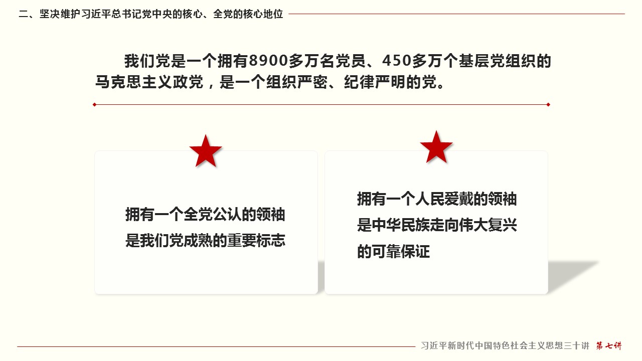 二、坚决维护习近平总书记党中央的核心、全党的核心地位