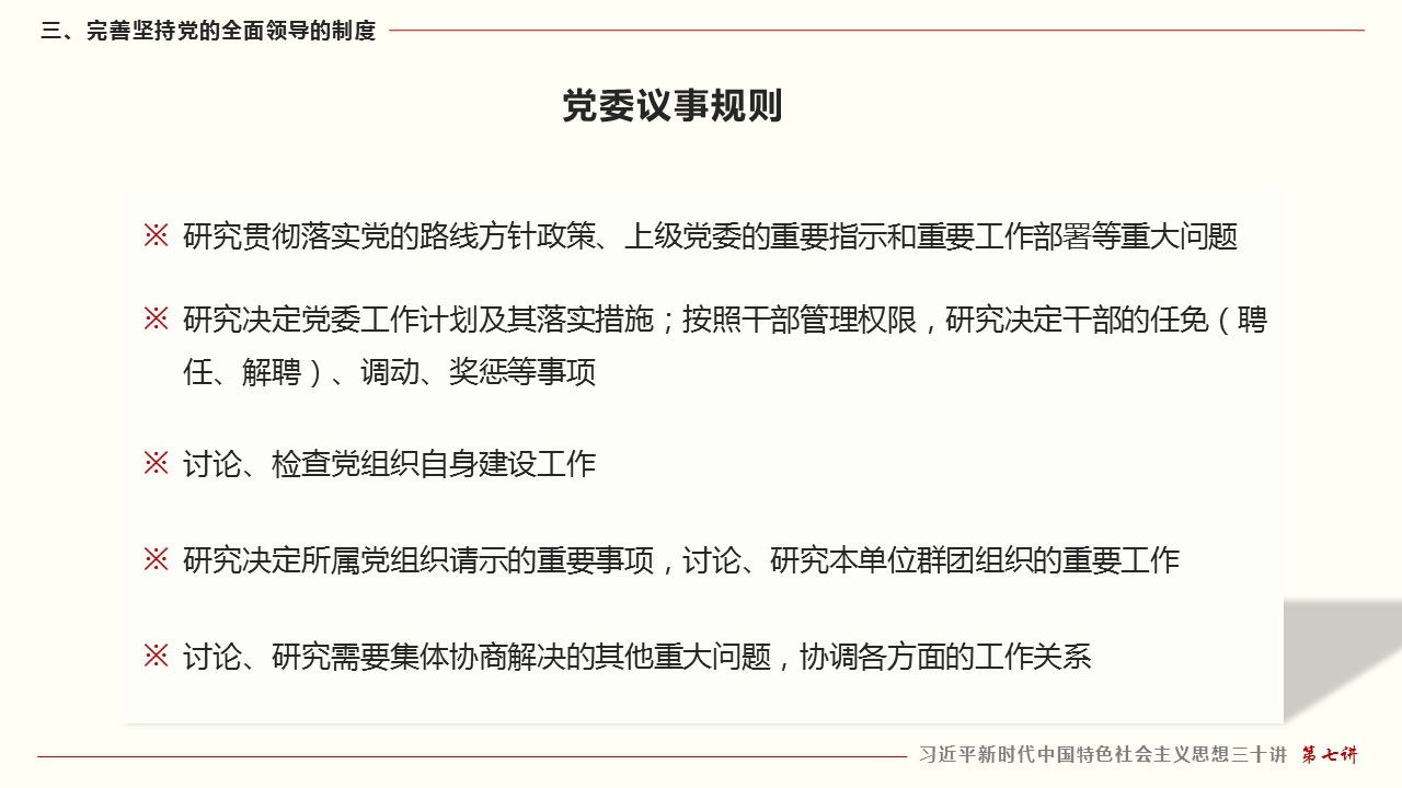 三、完善坚持党的全面领导的制度