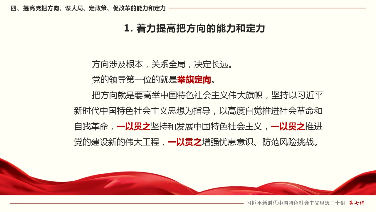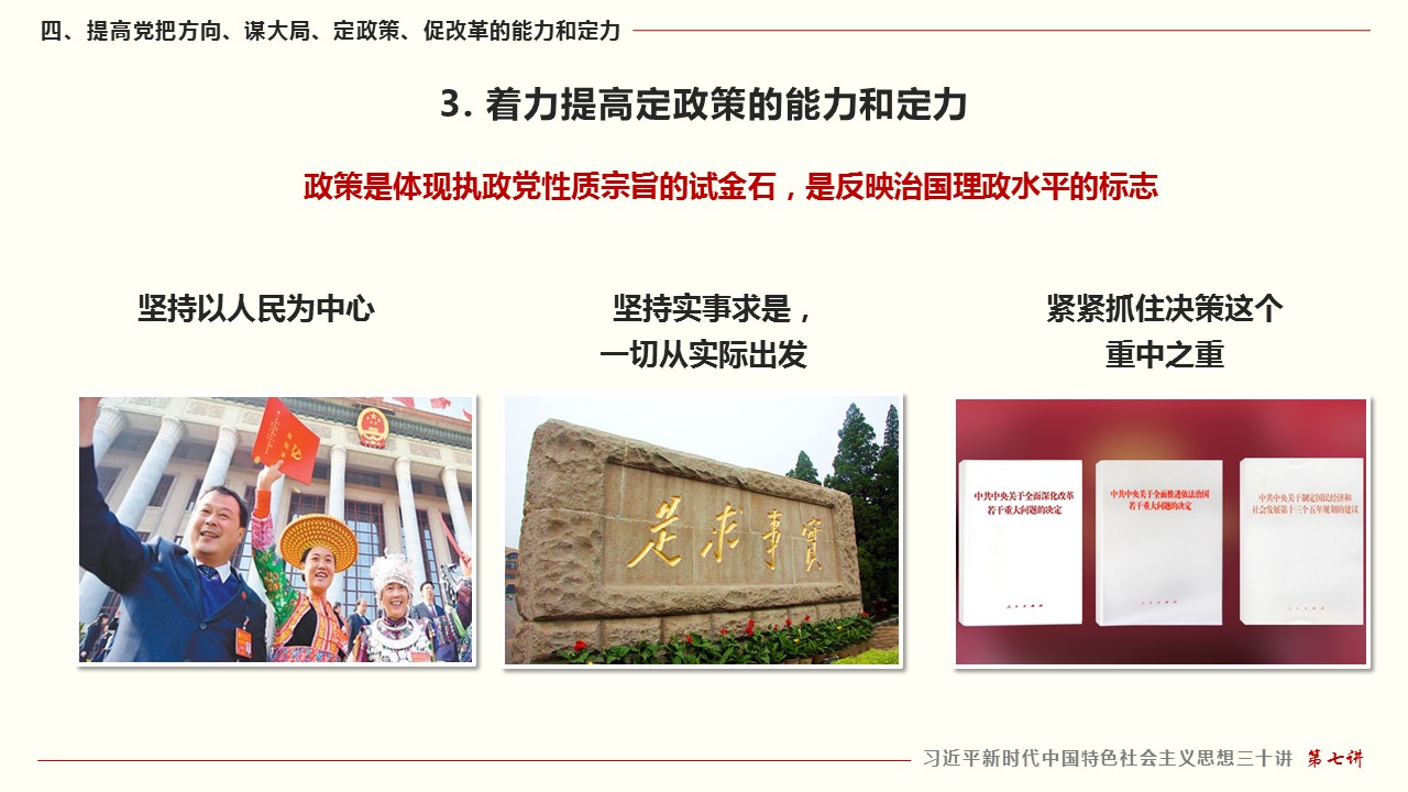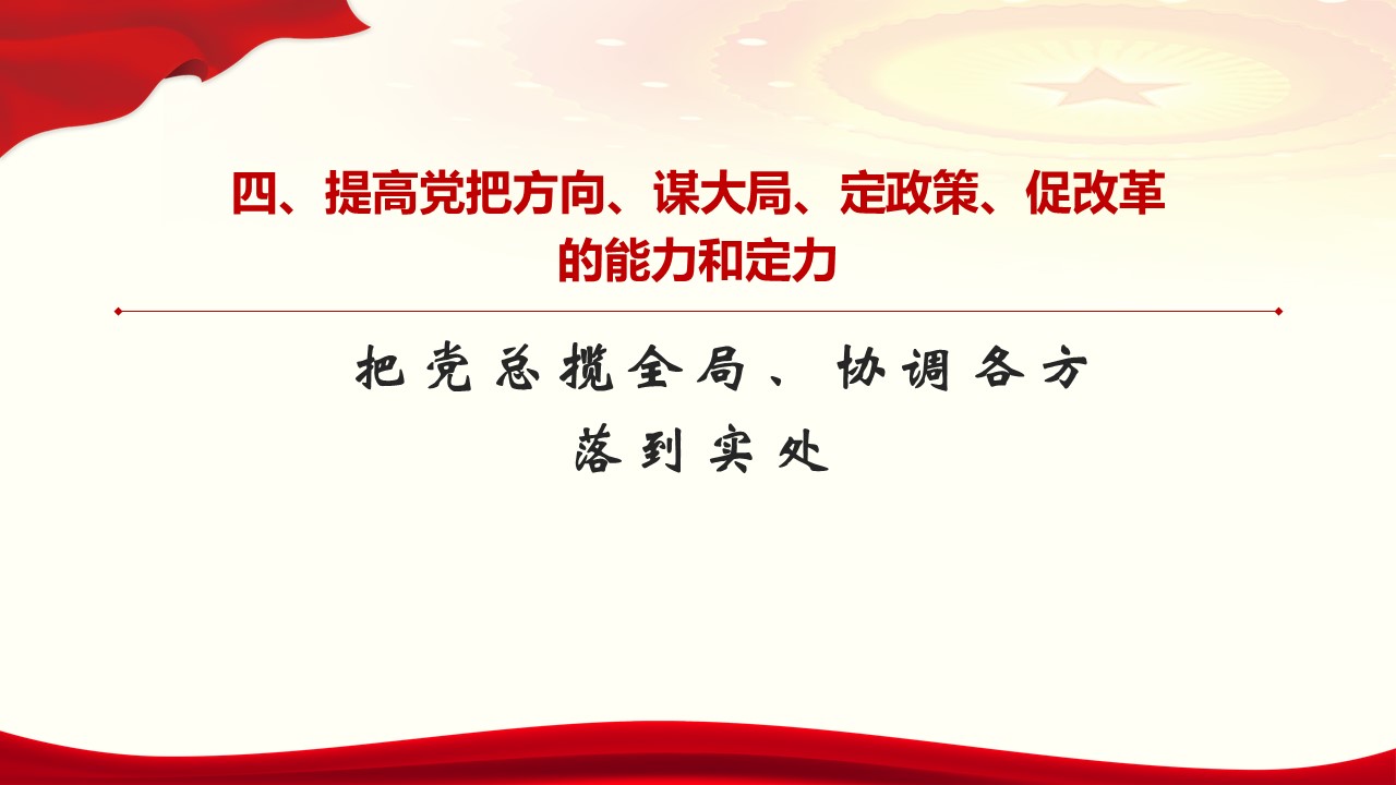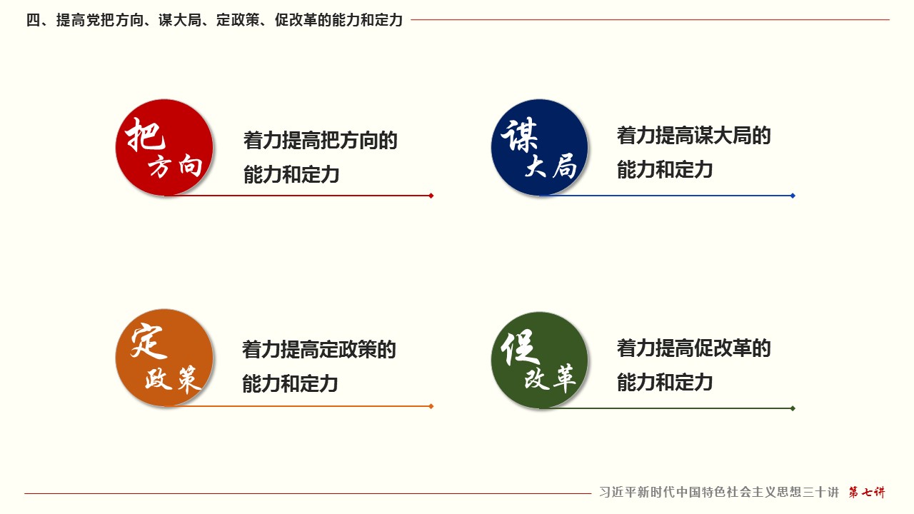 四、提高党把方向、谋大局、定政策、促改革的能力和定力