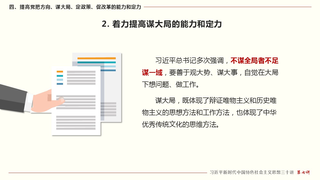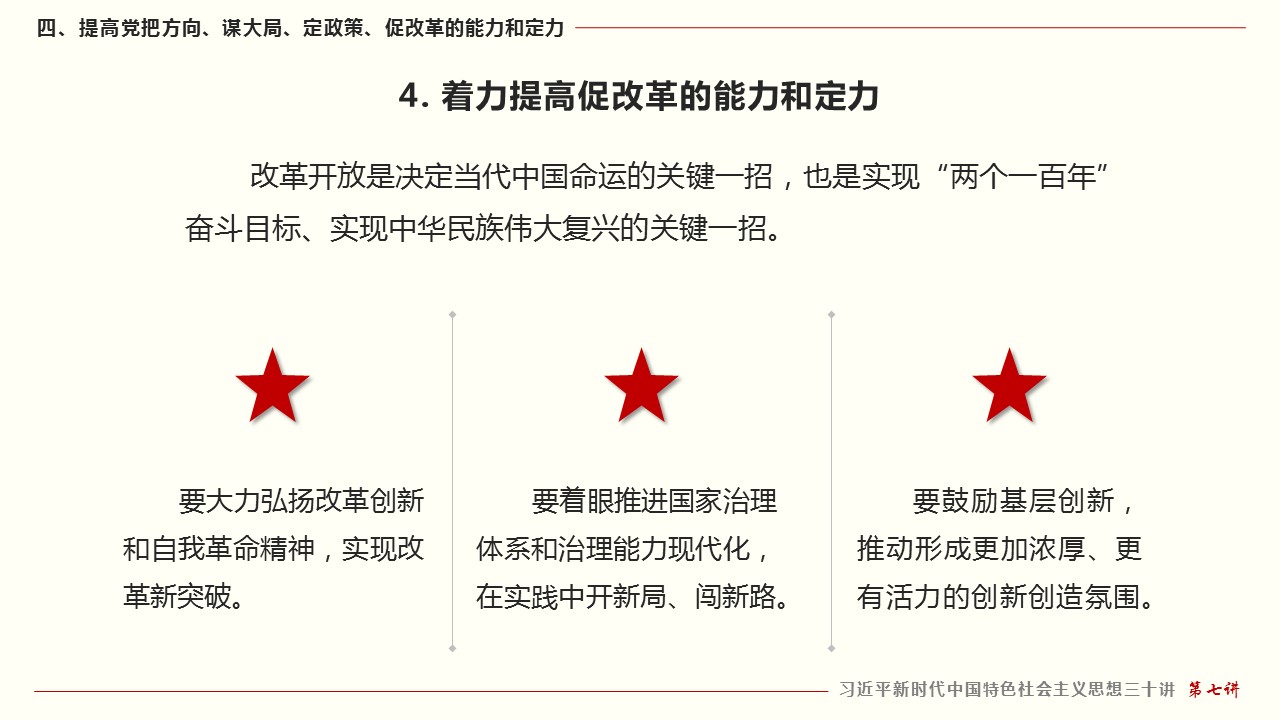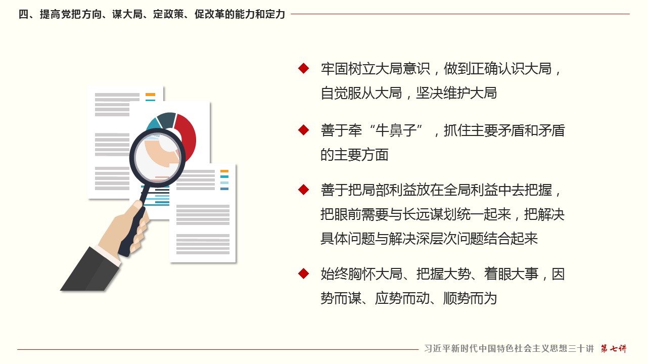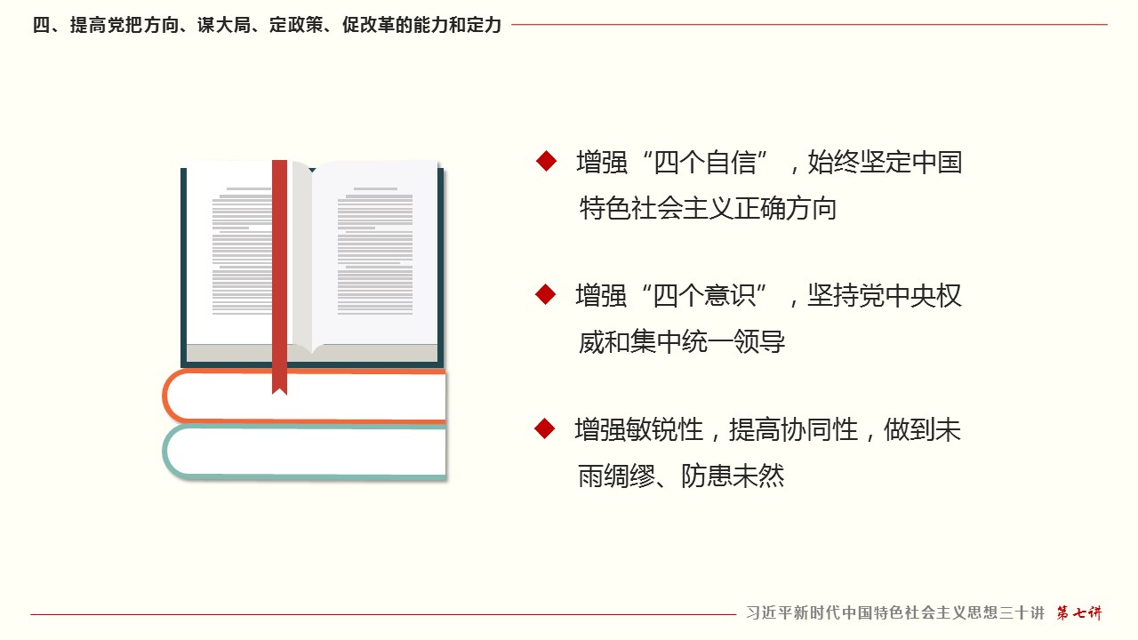 四、提高党把方向、谋大局、定政策、促改革的能力和定力