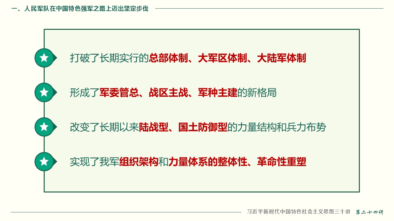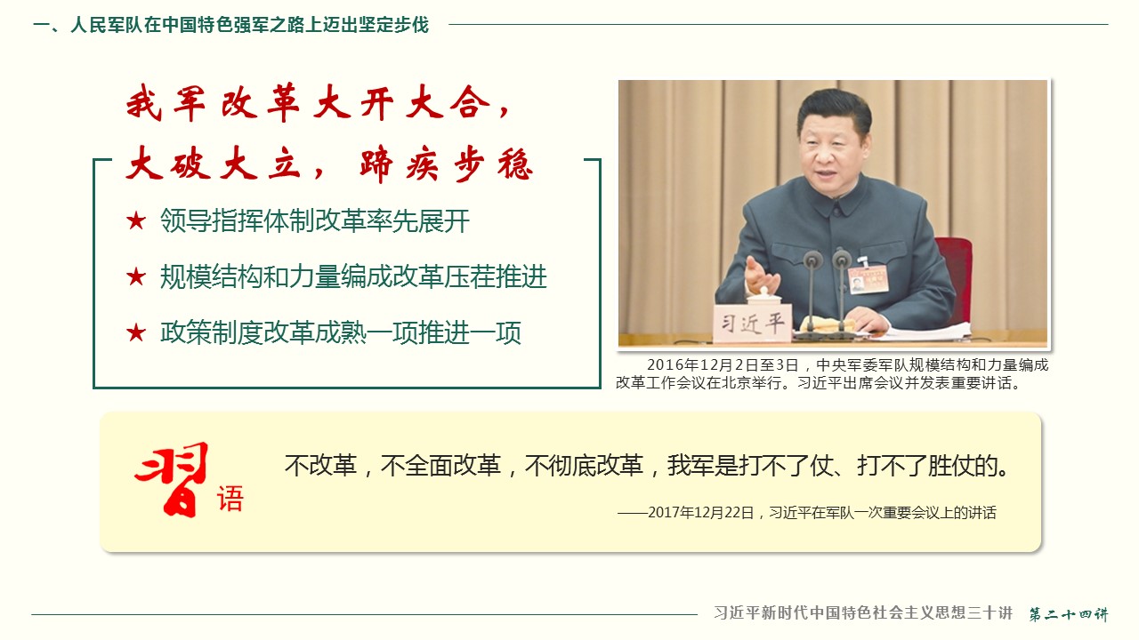 一、人民军队在中国特色强军之路上迈出坚定步伐