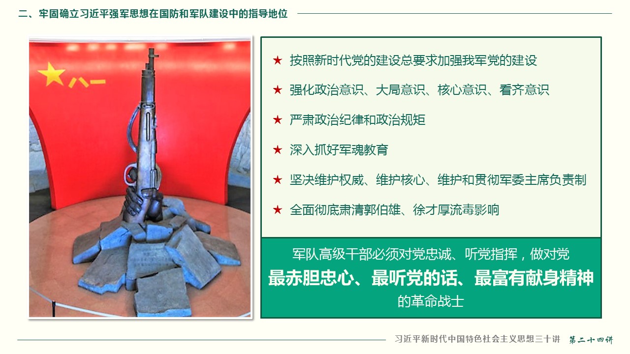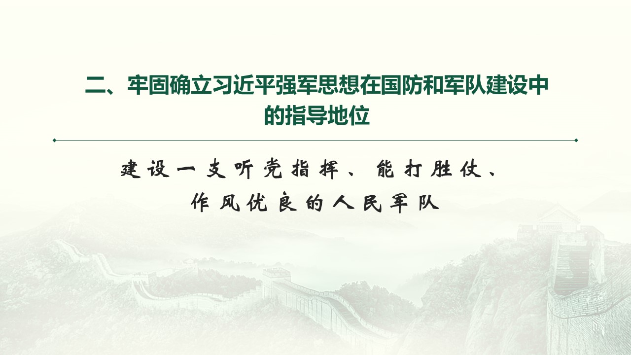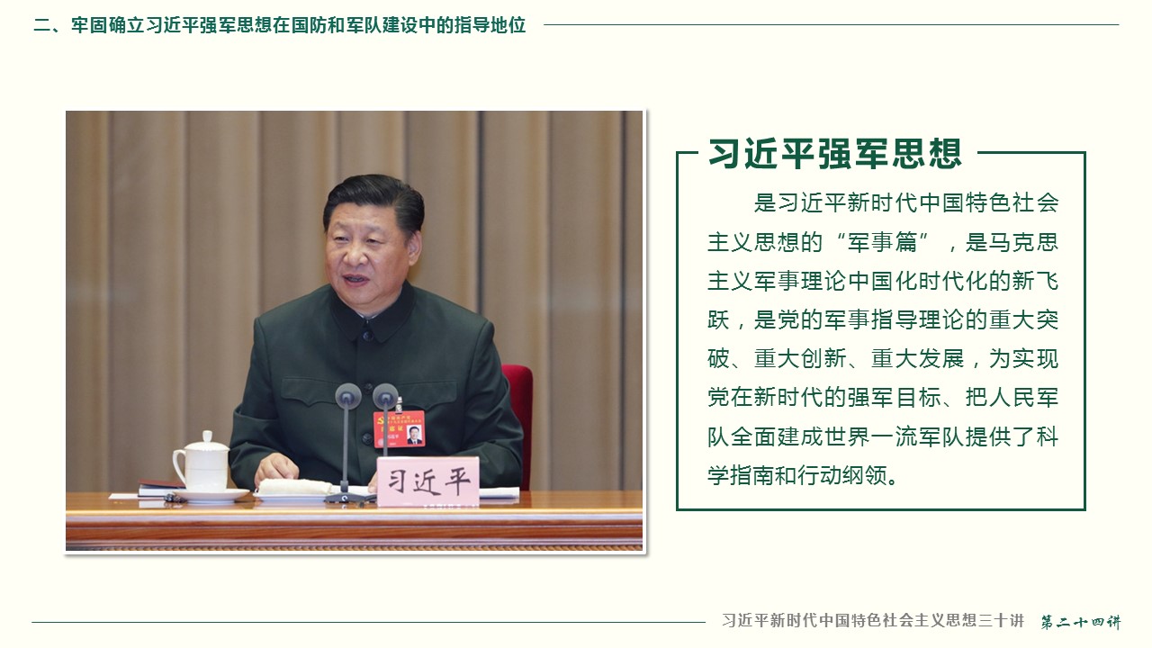二、牢固确立习近平强军思想在国防和军队建设中的指导地位
