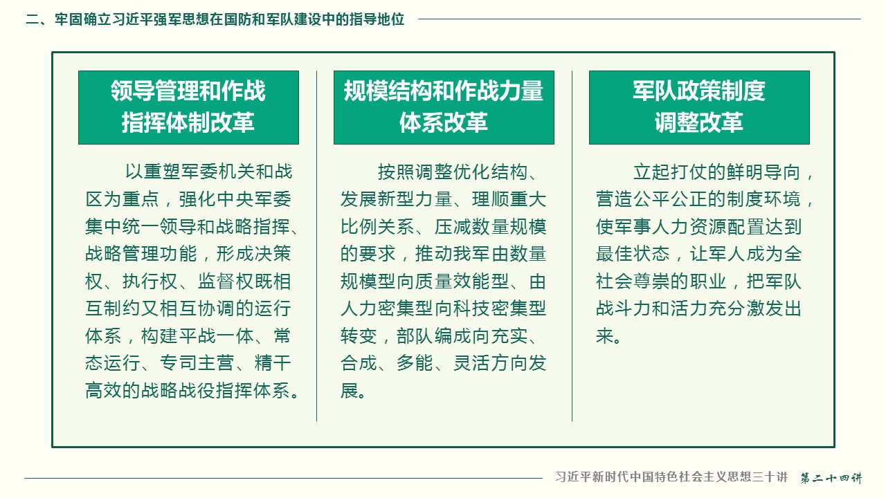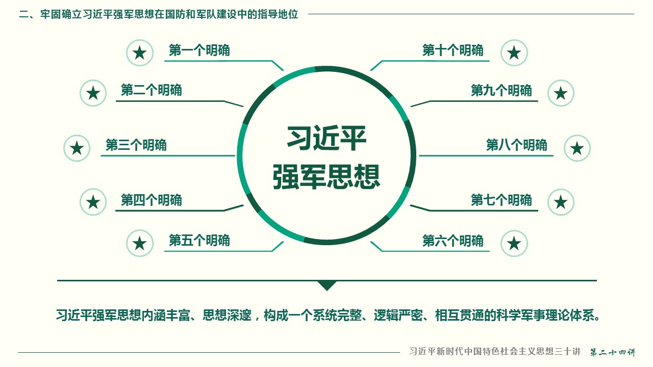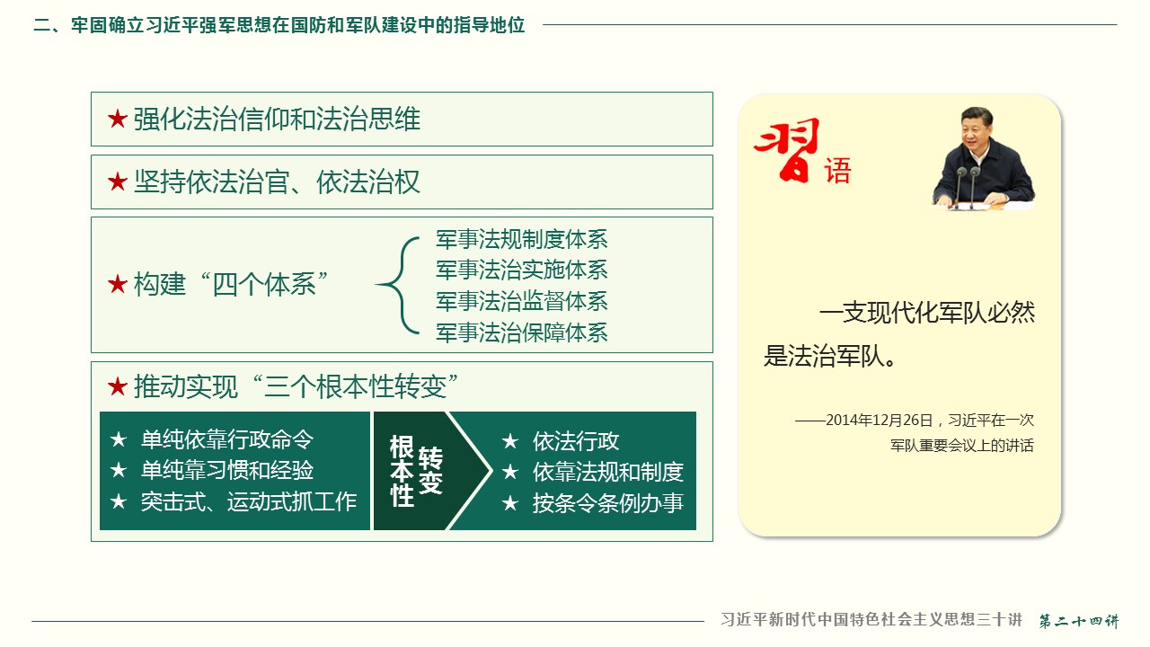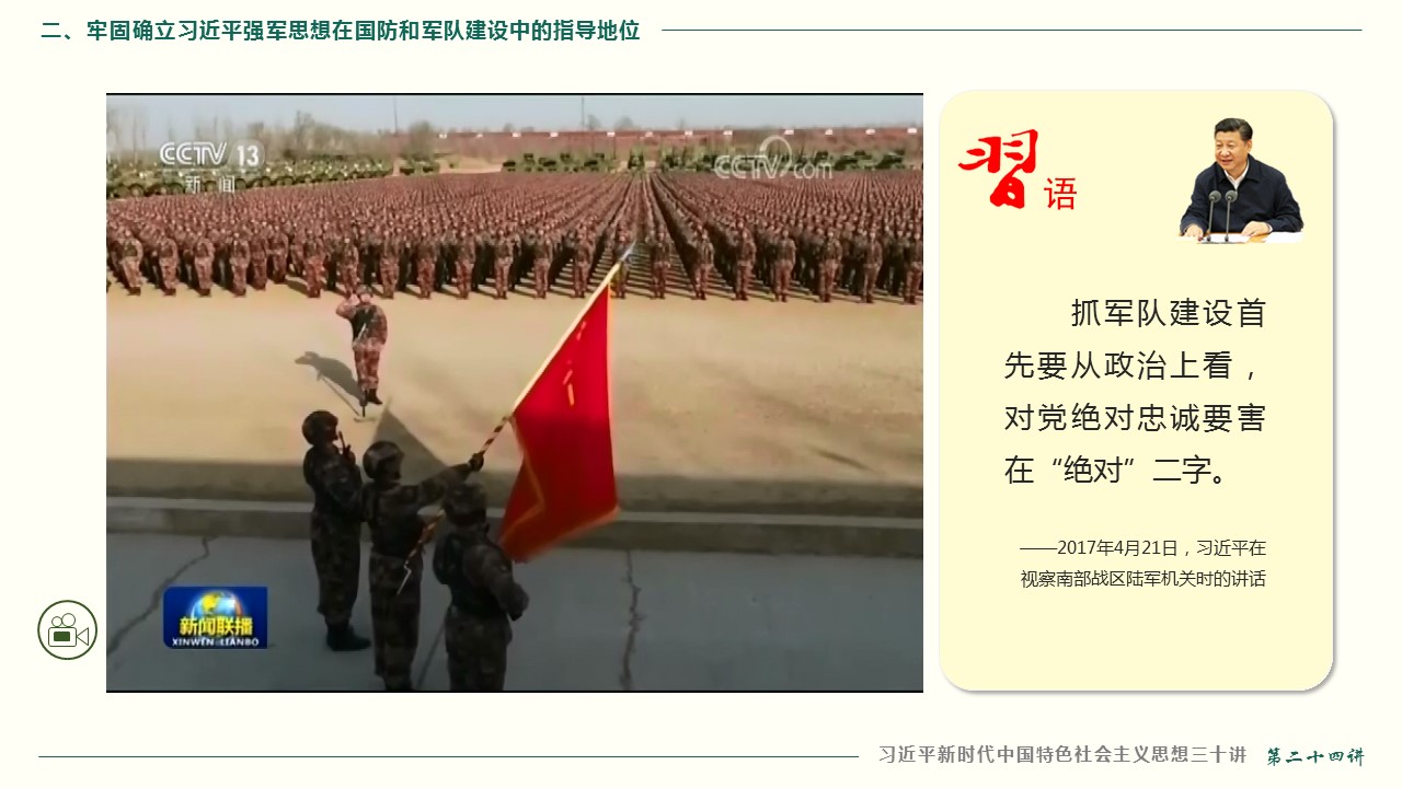 二、牢固确立习近平强军思想在国防和军队建设中的指导地位
