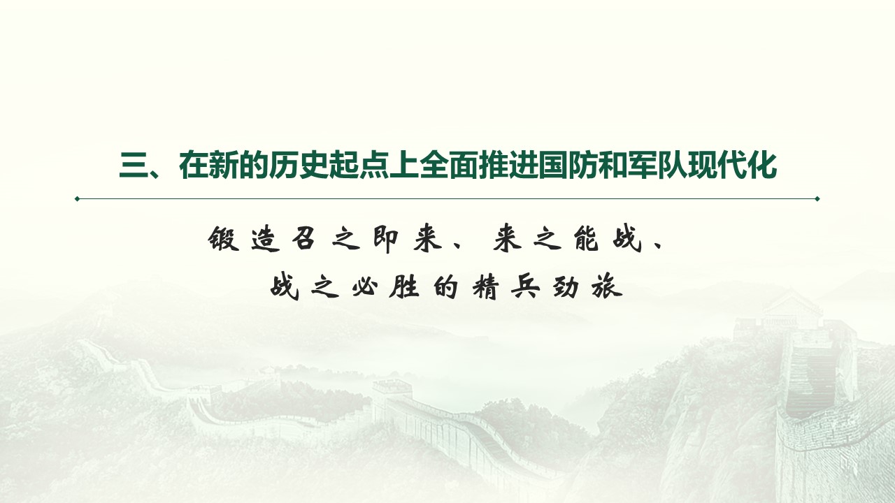 三、在新的历史起点上全面推进国防和军队现代化