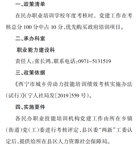 西宁市人力资源社会保障局落实 “两新”组织“政策清单”实施细则