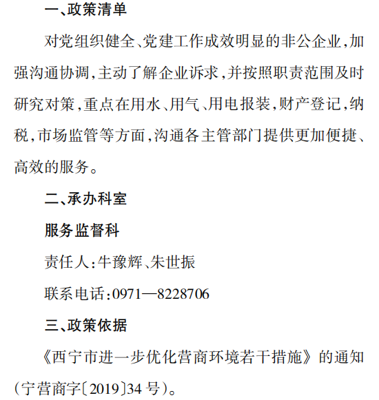 西宁市营商环境建设监督局落实 “两新”组织“政策清单”实施细则